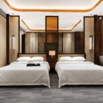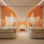 The room features two comfortable beds, individual study desks and chairs, and a large wardrobe with ample storage for both occupants. Big windows allow plenty of natural light, creating a bright and refreshing atmosphere throughout the day.